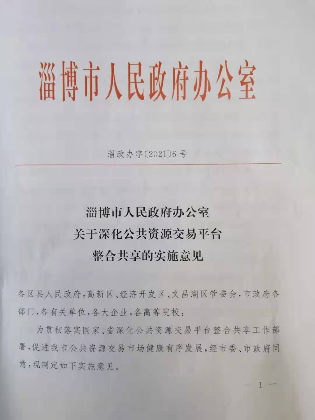 关于深化公共资源交易平台整合共享的实施意见(淄政办字〔2021〕6号).pdf