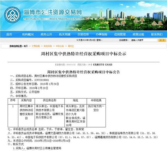 为了解决供热需求与供热能力间的矛盾,周村区计划对全区集中供热管网进行全面提升改造,委托淄博市公共资源交易中心周村区分中心对本工程的供热特许经营权进行了公开招标。经过公开、公平、公正透明的招标程序和专家委员会的评审,确定中国电子系统技术有限公司和淄博双悦热力有限公司联合体为中标单位。此次招标项目是周村区乃至淄博市自公共资源交易平台运行以来的首个特许经营权交易项目。本次供热特许经营权项目的交易成功,既培育和发展了周村区产权交易市场,又规范了国有产权交易行为,是拓展产权交易范围的一次积极尝试。